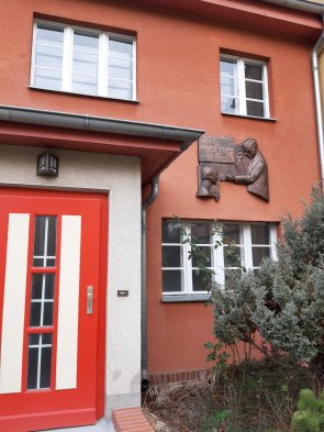The public housing authority Stadt und Land (City and Country) began building a small group of row houses in 1929 on what was the Königsallee (now the Hauptstrasse). It was dubbed Grüner Winkel, or Green Nook. In June of 1930, the writer Hans Fallada, born Rudolf Ditzen, moved into the house at number 10 with his wife Anna and son, Ulrich. It was here, between October 1931 and February 1932, that he wrote his perhaps best-known novel “Little Man, What Now?”. In honor of what would have been Hans Fallada’s 70th birthday, the Green Nook was renamed Fallada Ring in a ceremony attended by the writer’s widow, Anna Ditzen. His former residence at Fallada Ring 10 now houses a small museum dedicated to the writer, which can be visited upon appointment.
