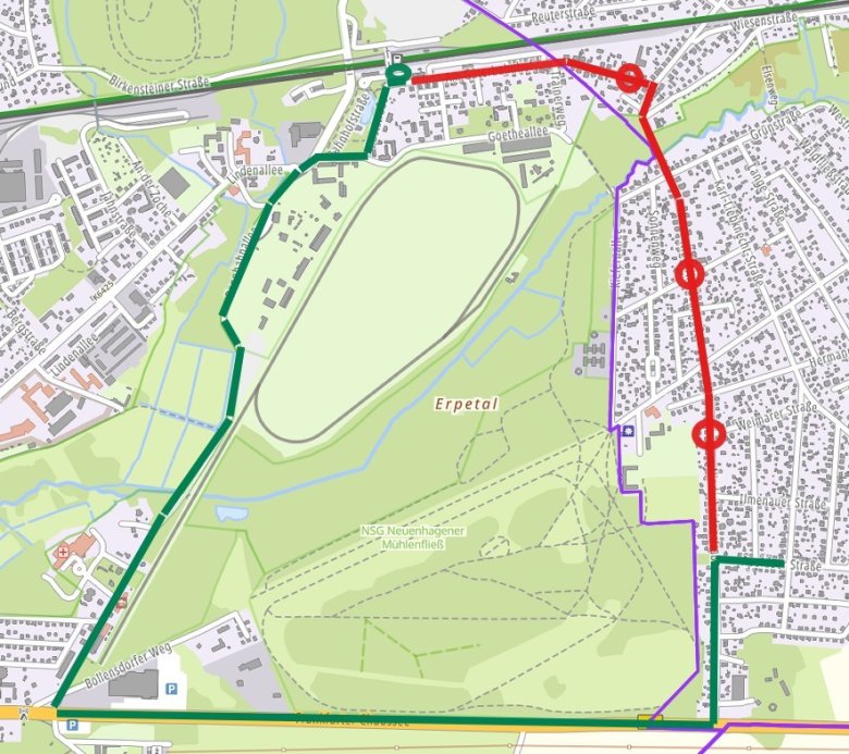 Eine Umleitung über die Niederheidenstraße und den Sankt-Georgs-Weg ist wegen der Querung des Bahnüberganges nicht mehr möglich, da die Anschlüsse an die S-Bahn nicht gewährleistet werden können.
