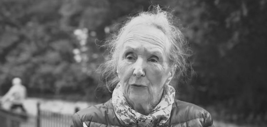 Foto: Marianne Wachtmann im Interview mit dem ZDF anlässlich 80 Jahre Kriegsende (Schwarz-Weiss-Kopie des Screenshots vom 24.10.2025 11:13 Uhr – https://www.zdfheute.de/politik/kriegsende-weltkrieg-80-jahre-danach-100.html)