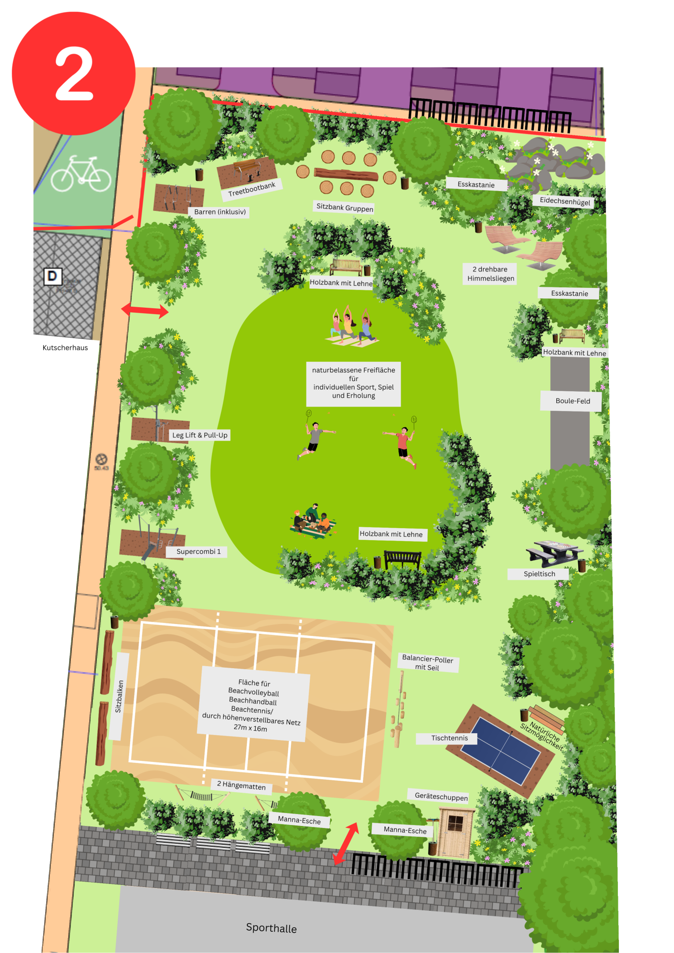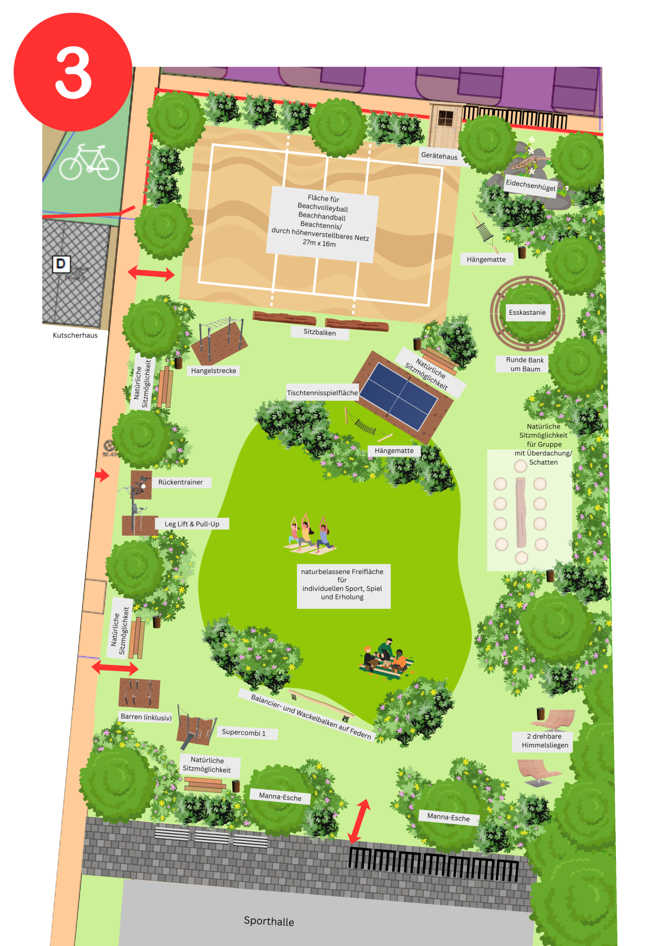 Auf Basis des Beteiligungsverfahrens wurden drei konkrete Gestaltungsvorschläge entwickelt, die vom 1. September bis zum 14. September 2025 zur digitalen Abstimmung bereit (Es kann nur einmal über die jeweilige IP-Adresse abgestimmt werden, um Mehrfachabstimmungen zu verhindern. Die IP-Adresse wird dabei anonymisiert und nicht gespeichert). Damit geht der Beteiligungsprozess in die nächste Runde – mit dem Ziel, eine Fläche zu schaffen, die möglichst viele Perspektiven und Bedürfnisse vereint. Für die Entscheidungsfindung wurde eine ausführliche Präsentation erarbeitet, um die drei Vorschläge, die zur Abstimmung stehen, so gut wie möglich greifbar werden.
