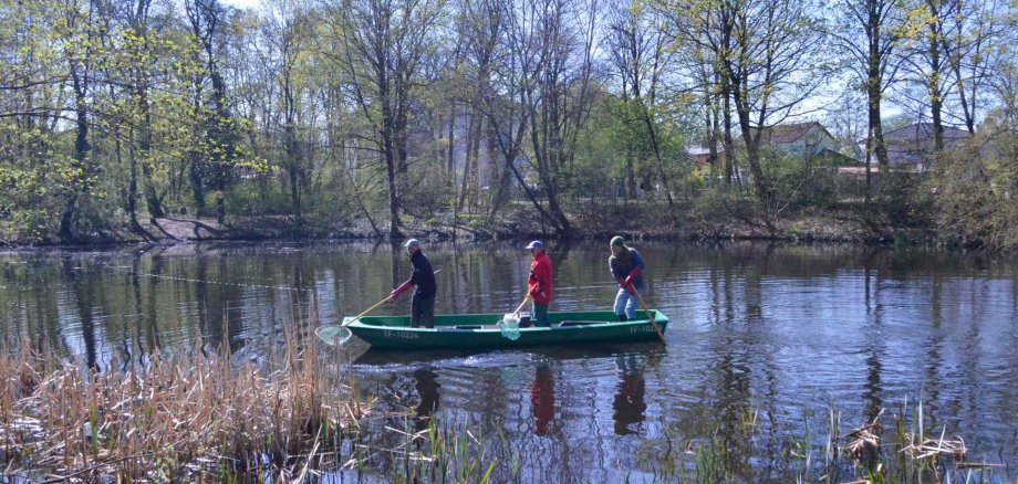 Am 21. April fand im Teich des Hellpfühleparks in Neuenhagen planmäßig eine Elektrobefischung zur ökologischen Gewässerpflege statt. Ziel der Maßnahme war es, den Fischbestand zu regulieren und insbesondere invasive Arten zu reduzieren, um das Gewässer als wertvollen Lebensraum für Amphibien zu erhalten.