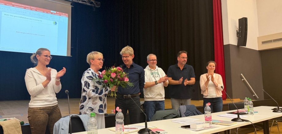 Insbesondere die Ernennung von Gabriela Faika zur Ehrenvorsitzenden wurde mit stehendem Applaus im Bürgerhaus gewürdigt – eine besondere Anerkennung für ihr langjähriges Engagement. Bürgermeister Ansgar Scharnke übergab ihr im Bürgerhaus Blumen und würdigte ihre Leistungen für das Vorankommen des Vereins wahrend ihrer Amtszeit (siehe Foto). Da Faika nach sechs erfolgreichen Amtsjahren aus persönlichen Gründen nicht erneut kandidierte, musste das Amt des 1. Vorsitzenden neu besetzt werden. Mit Robert Burkhardt stellte sich ein Kandidat zur Wahl. Der übrige Vorstand kandidierte geschlossen erneut. Gegenkandidaten gab es nicht. Die Mitglieder entschieden sich für eine offene Blockwahl – alle Kandidaten wurden ohne Gegenstimme gewählt.
