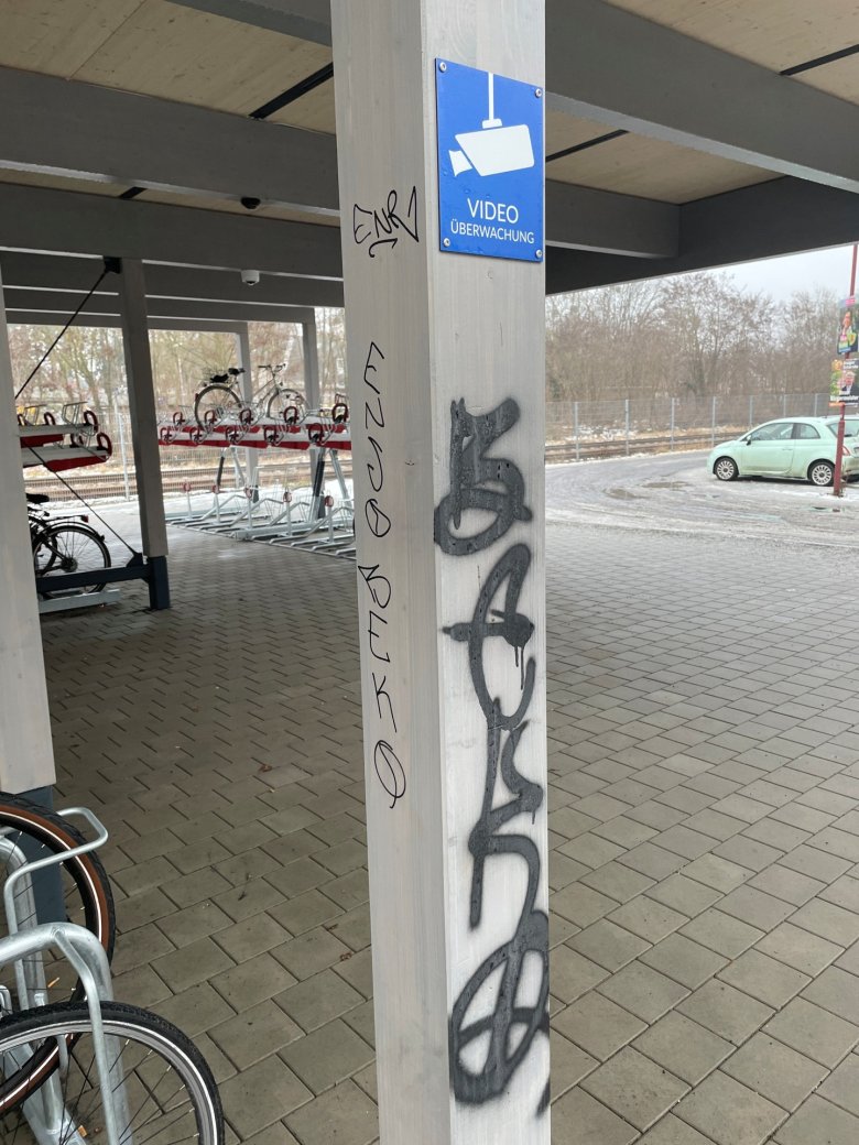 Es hat wenige Wochen gedauert, bis die neue Fahrradabstellanlage auf der Bahnhofsüdseite beschmiert wurde. Selbst die neue Videoüberwachungsanlage hat in diesem Fall nicht abgeschreckt. Im Gegenteil: Eine Tat wurde am 27.12.2025 in den Nachmittagsstunden bei Tageslicht verübt. Dennoch zeigen Videoaufnahmen den Täter. Es wurde Strafanzeige gegen Unbekannt gestellt und die Videoaufnahmen an die Polizei übermittelt. In diesem Zusammenhang bittet die Gemeindeverwaltung alle Neuenhagener, derartige Vorfälle bei der Polizei anzuzeigen.