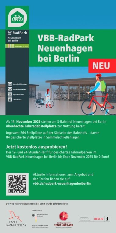 Die neuen Fahrradabstellanlagen in Neuenhagen bei Berlin wurden mit Unterstützung des Bundesministeriums für Verkehr, des Landes Brandenburg, des Verkehrsverbunds Berlin-Brandenburg (VBB) und des Landesbetrieb für Bauen und Verkehr) geplant und umgesetzt.