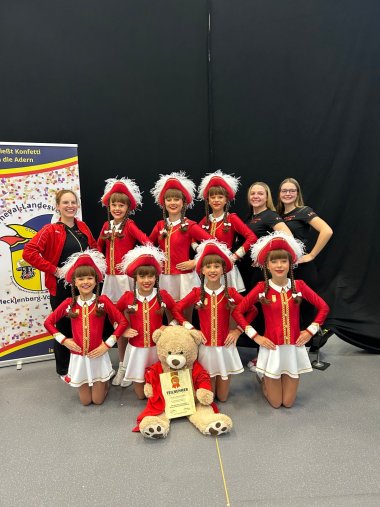 Erst im März 2024 hat die SG Rot-Weiß Neuenhagen den Tanzsport als neue Abteilung aufgenommen und schon eineinhalb Jahre später können die Akteure in allen Altersklassen auf der Landesmeisterschaft Berlin Brandenburg punkten. Am 4. und 5. Oktober 2025 ging es für die Tänzerinnen der SG Rot-Weiß Neuenhagen nach Güstrow, in die siebtgrößte Stadt Mecklenburg-Vorpommerns, um die erste Landesmeisterschaft zu absolvieren. Am Samstag durften als erstes die Jugendmädels (6-10 Jahre) an den Start gehen. Mit ihrem Schautanz mit dem Thema „Der Pirat Hein“ ertanzten sie sich 341 Punkte und damit einen 7. Platz.