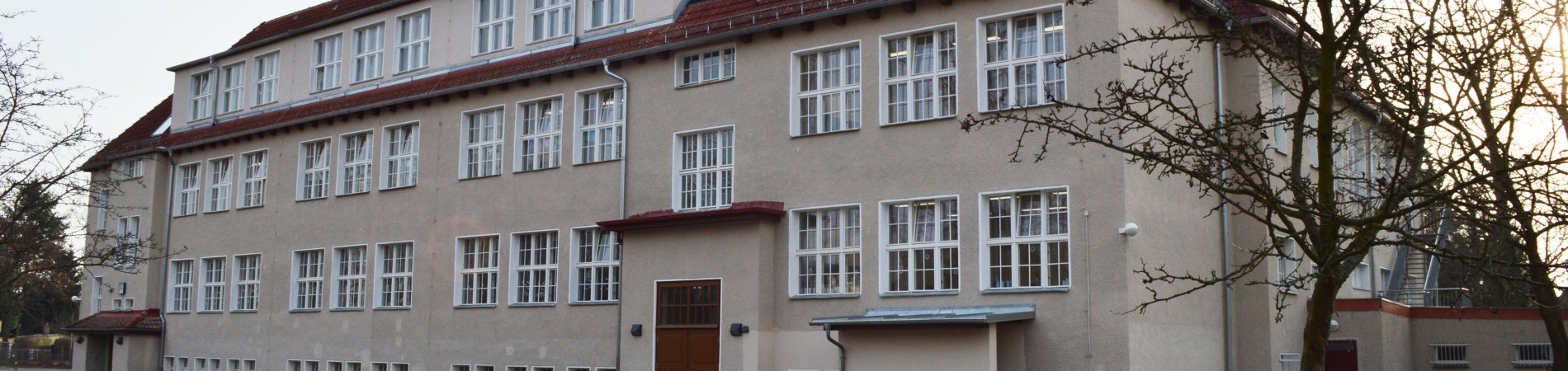 W dniu 11 września 1911 r. podjęta została decyzja rady miejskiej o budowie "nowej szkoły". Paul Miersch, pracujący wówczas jeszcze jako nauczyciel, sprawujący potem przez 25 lat posadę rektora szkoły, już wtedy aktywnie uczestniczył w planowaniu budowy. Życzył on sobie nowoczesny budynek szkolny w Neuenhagen, który "nie miał przypominać koszarów". Przyjął on więc następujące założenie, które praktycznie w całości zostało zrealizowane: "Budynek szkoły... nie powinien być usytuowany w pobliżu drogi, nie może on być otoczony wysokim żelaznym płotem. Ogród przed szkołą należy obsadzić drzewami, pomiędzy którymi będzie rósł trawnik. Podwórko szkolne ma być przedzielone drzewami na dwa obszary, w tym przed budynkiem urządzony zostanie plac zabaw i boisko. Gatunki drzew i krzewów zostaną tak dobrane, by mogły służyć celom edukacyjnym na lekcjach przyrody". W dniu 26 września 1913 r., po półtorarocznym okresie budowy "nowa szkoła" oddana została do użytku. Był to gustowny budynek z przestronnymi salami lekcyjnymi, salą gimnastyczną, aulą, szerokimi korytarzami wyposażonymi w dystrybutory na wodę, a nawet wieżą zegarową z okrągłą kopułą na dachu. Prostota budowli nieprzypadła jednak do gustu późniejszym władzom nazistowskim, tak więc podczas rozbudowy dachu w latach 1935/36 kopułę zastąpiono szpiczastą wieżą. W dniu 28 czerwca 1949 r. z okazji 200. rocznicy urodzin Johanna Wolfganga von Goethe "nowej szkole" nadano obowiązującą do dziś nazwę "Szkoły im. Goethego".